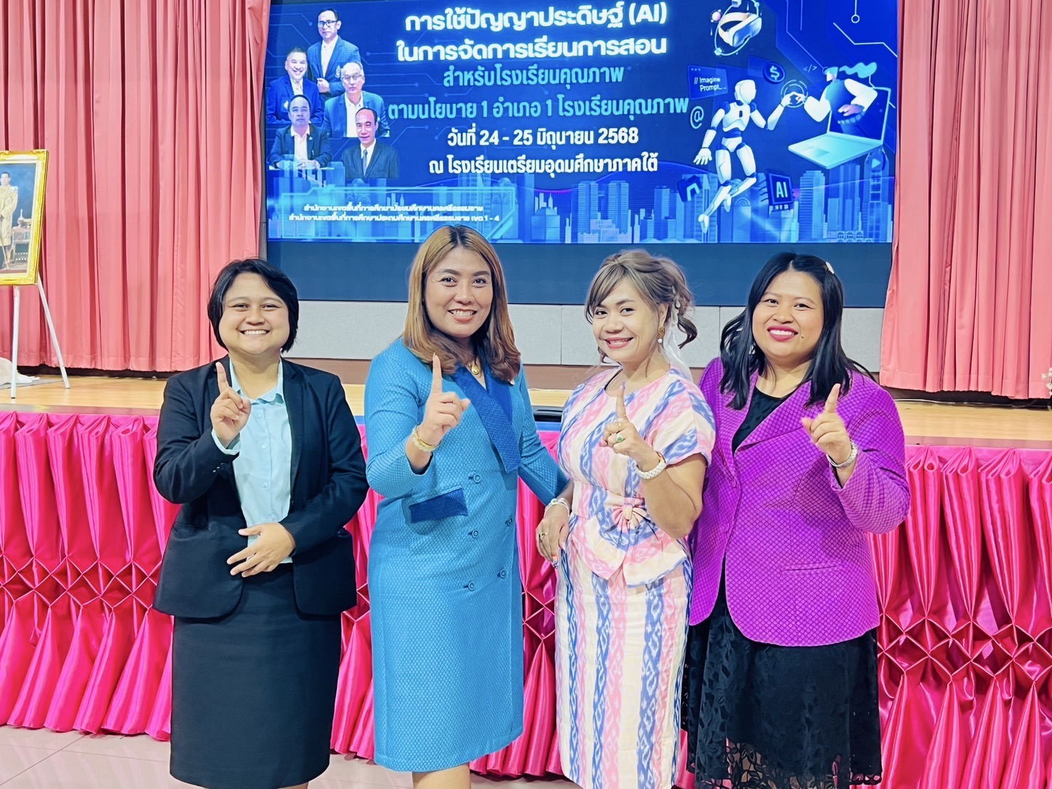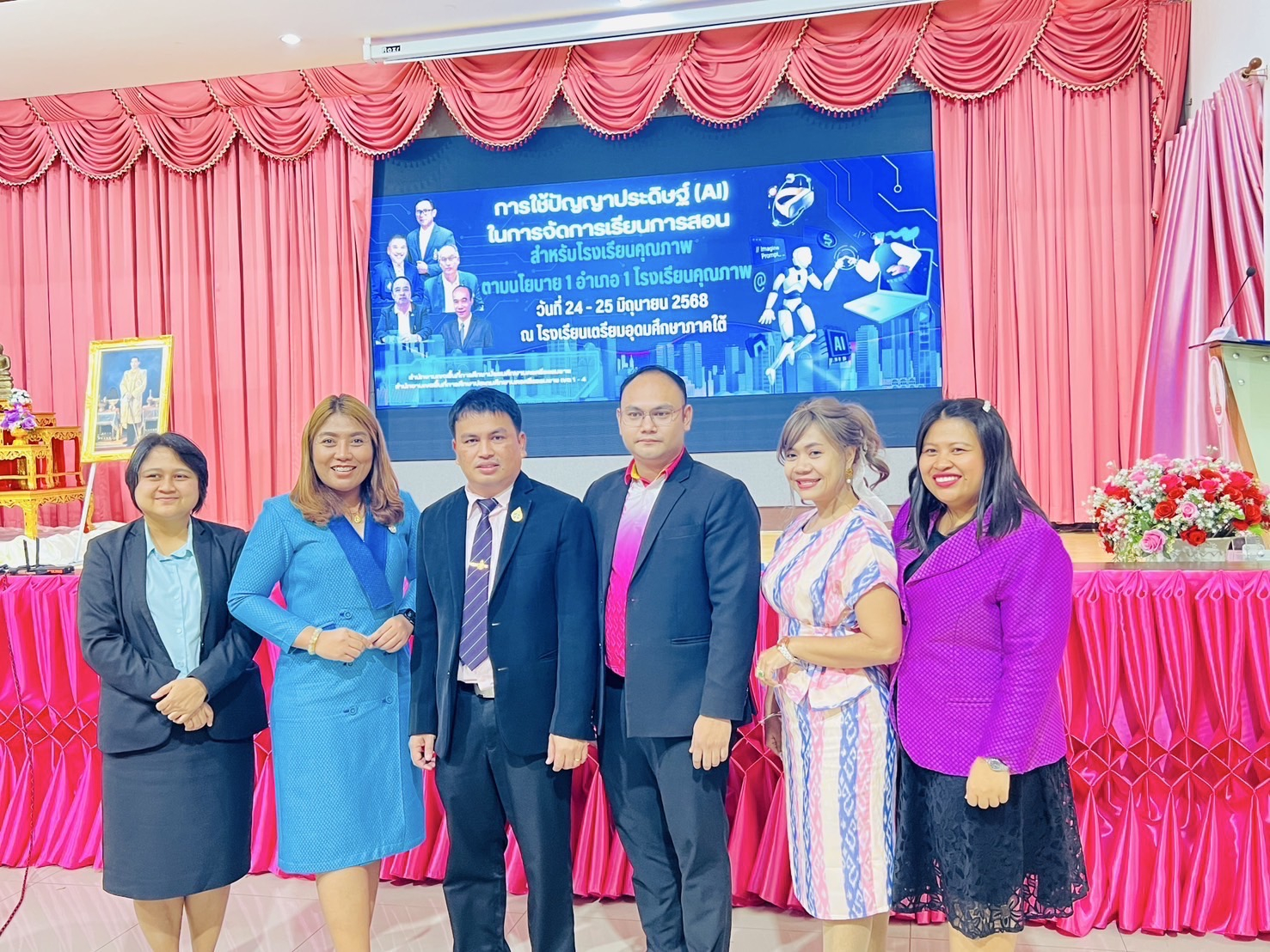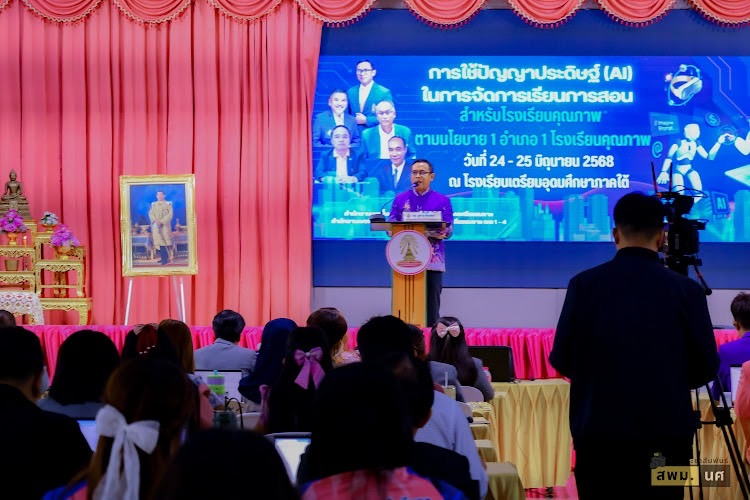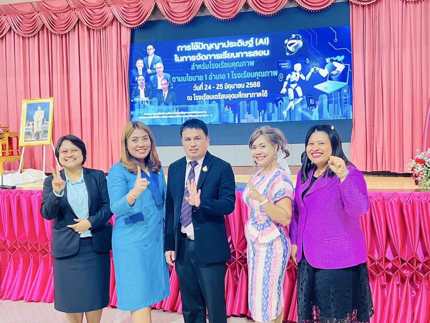 วันอังคารที่ 24 มิถุนายน 2568 นายพิพัฒน์ แสนโสม ผู้อำนวยการสำนักงานเขตพื้นที่การศึกษาประถมศึกษานครศรีธรรมราช เขต 3 มอบหมายให้ นางสาวณชนก คงด้วง ผู้อํานวยการกลุ่มนิเทศ ติดตาม และประเมินผลการจัดการศึกษา นางณัฐชา สหวิศิษฏ์ ศึกษานิเทศก์ นายศิลาเพชร คำภูเมือง นักวิชาการคอมพิวเตอร์ พร้อมด้วยคณะผู้บริหารสถานศึกษา ครูและบุคลากรทางการศึกษาในสังกัด เข้าร่วมการอบรมเชิงปฏิบัติการการใช้ปัญญาประดิษฐ์ AI สำหรับการจัดการเรียนการสอนในโรงเรียนคุณภาพ 1 อำเภอ 1 โรงเรียนคุณภาพระหว่างวันที่ 24-25 มิถุนายน 2568 ณ โรงเรียนเตรียมอุดมศึกษาภาคใต้