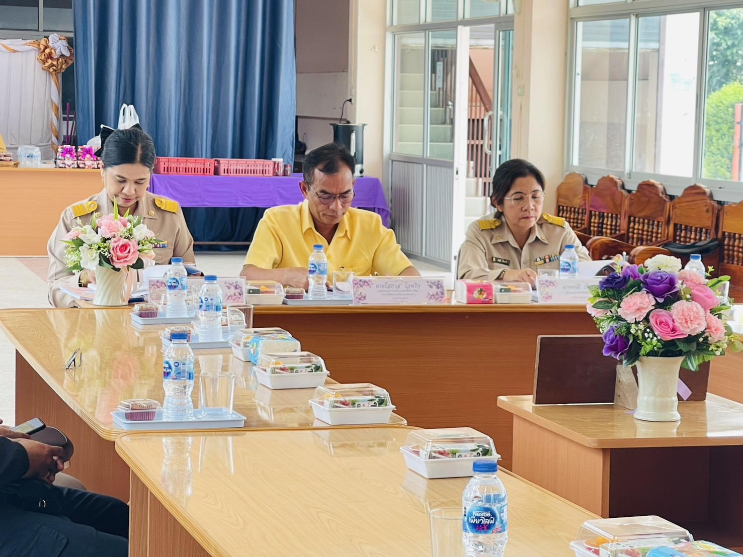 วันจันทร์ที่ 4 สิงหาคม 2568 นายพิพัฒน์ แสนโสม ผู้อำนวยการสำนักงานเขตพื้นที่การศึกษาประถมศึกษานครศรีธรรมราช เขต 3 มอบหมายให้นายโสภาส โอพริก รองผู้อำนวยการสำนักงานเขตพื้นที่การศึกษาประถมศึกษานครศรีธรรมราช เขต 3 เป็นประธานกรรมการประเมินสัมฤทธิผลการปฎิบัติงานในหน้าที่เพื่อพัฒนาการศึกษาของรองผู้อำนวยการสถานศึกษาและผู้อำนวยการสถานศึกษาปี พ.ศ 2567 ครั้งที่ 2 (6 เดือนหลัง) พร้อมด้วยนางสาวจิรา ไพรัช ผู้อำนวยการโรงเรียนวัดนาหมอบุญ กรรมการ นางดรุณี ปั้นวงศ์ ผู้อำนวยการโรงเรียนวัดบางด้วน กรรมการและเลขานุการ และนางประไพพิศ ไชยเดช ผู้อำนวยการกลุ่มพัฒนาครูและบุคลากรทางการศึกษา เป็นผู้ช่วยเลขานุการ ได้ประเมินสัมฤทธิผลการปฎิบัติงานในหน้าที่เพื่อพัฒนาการศึกษาของ ว่าที่ร้อยตรีหญิงกนกทิพย์ สุขอนันต์ รองผู้อำนวยการโรงเรียนวัดนาหมอบุญ นางสาวมนัญชยา ควรรำพึง รองผู้อำนวยการโรงเรียนร่อนพิบูลย์ นางสาวจันทร์จิรา สระแดง รองผู้อำนวยการโรงเรียนบ้านควนรุย และนางสาวสุวิชชา บุญฤทธิ์ รองผู้อำนวยการโรงเรียนวัดแดง
