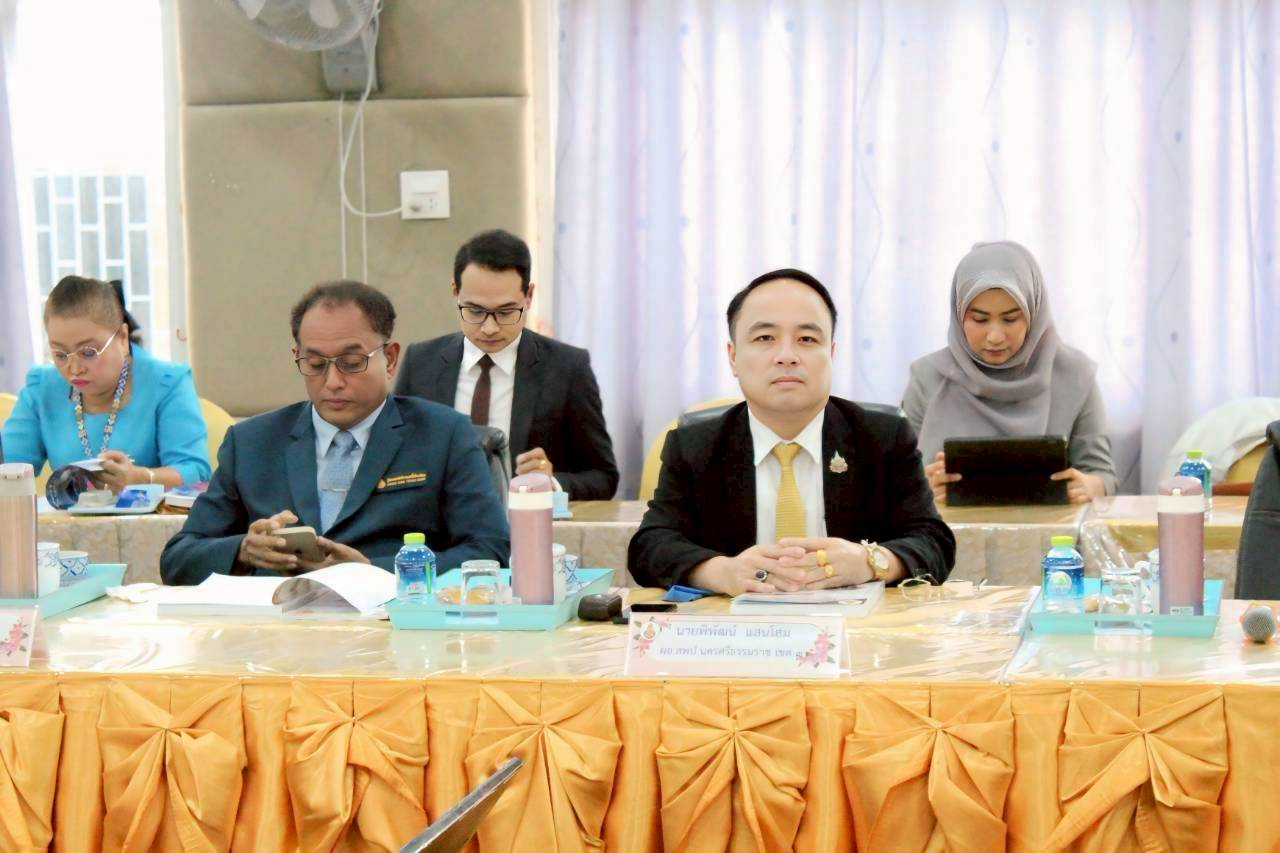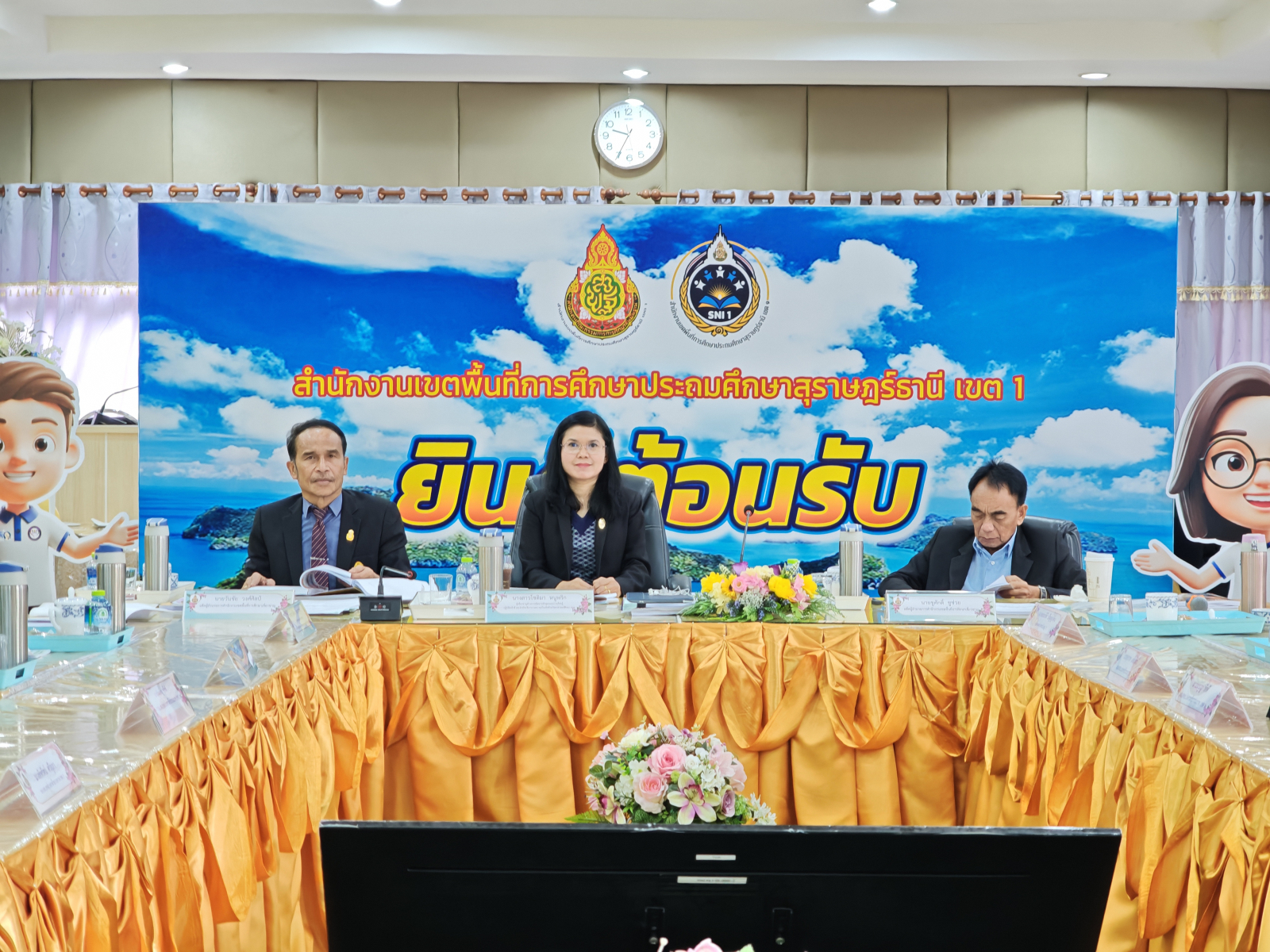 วันศุกร์ที่ 22 สิงหาคม 2568 นายพิพัฒน์ แสนโสม ผู้อำนวยการสำนักงานเขตพื้นที่การศึกษาประถมศึกษานครศรีธรรมราช เขต 3 พร้อมด้วยนางทิพรัตน์ ศรีสุภา รองผู้อำนวยการสำนักงานเขตพื้นที่การศึกษาประถมศึกษานครศรีธรรมราช เขต 3 เข้าร่วมการประเมินผลการพัฒนางานตามข้อตกลงของข้าราชการครูและบุคลากรทางการศึกษา ตำแหน่งผู้อำนวยกาสำนักงานเขตพื้นที่การศึกษา สังกัดสำนักงานคณะกรรมการการศึกษาขั้นพื้นฐานประจำปีงบประมาณ พ.ศ.2568 กลุ่มพื้นที่การศึกษา เขตตรวจราชการที่ 5 คณะที่ 1 (ชุมพร สุราษฎร์ธานี นครศรีธรรมราช) ณ ห้องประชุมเมืองคนดี สำนักงานเขตพื้นที่การศึกษาประถมศึกษาสุราษฎร์ธานี เขต 1
