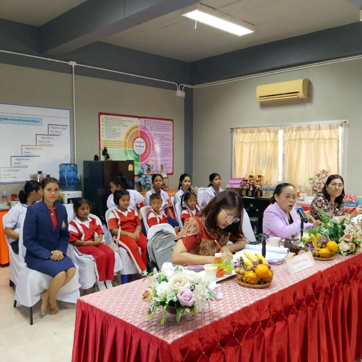วันพุธที่ 27 สิงหาคม 2568 นายพิพัฒน์ แสนโสม ผู้อำนวยการสำนักงานเขตพื้นที่การศึกษาประถมศึกษานครศรีธรรมราช เขต 3 มอบหมายให้นางทิพรัตน์ ศรีสุภา รองผู้อำนวยการสำนักงานเขตพื้นที่การศึกษาประถมศึกษานครศรีธรรมราช เขต 3 พร้อมคณะกรรมการ ลงพื้นที่ขับเคลื่อนการใช้เครื่องมือแบบสะท้อนคุณภาพสถานศึกษาในโครงการ 1 อำเภอ 1 โรงเรียนคุณภาพ เพื่อให้โรงเรียนในโครงการ 1 อำเภอ 1 โรงเรียนคุณภาพ ในสังกัดได้ใช้เครื่องมือแบบสะท้อนเป็นกรอบการดำเนินงานอย่างมีทิศทาง เป็นกลไกสำคัญในการสนับสนุนให้สถานศึกษาสามารถประเมินตนเองได้อย่างเป็นระบบ โดยสะท้อนให้เห็นถึงจุดแข็ง จุดที่ควรพัฒนา และโอกาสในการยกระดับคุณภาพการศึกษาซึ่งช่วยให้สถานศึกษาวางแผนพัฒนาได้อย่างเหมาะสมและตรงตามบริบทของพื้นที่ ณ โรงเรียนวัดสุวรรณโฆษิต อำเภอร่อนพิบูลย์ จังหวัดนครศรีธรรมราช