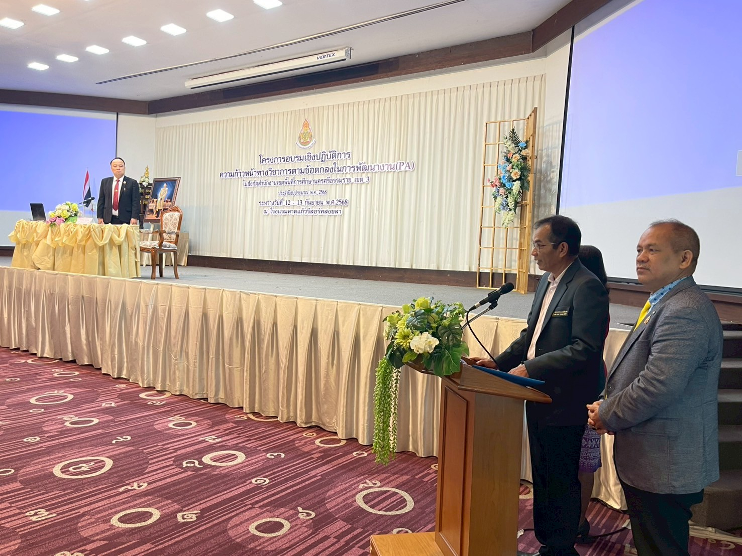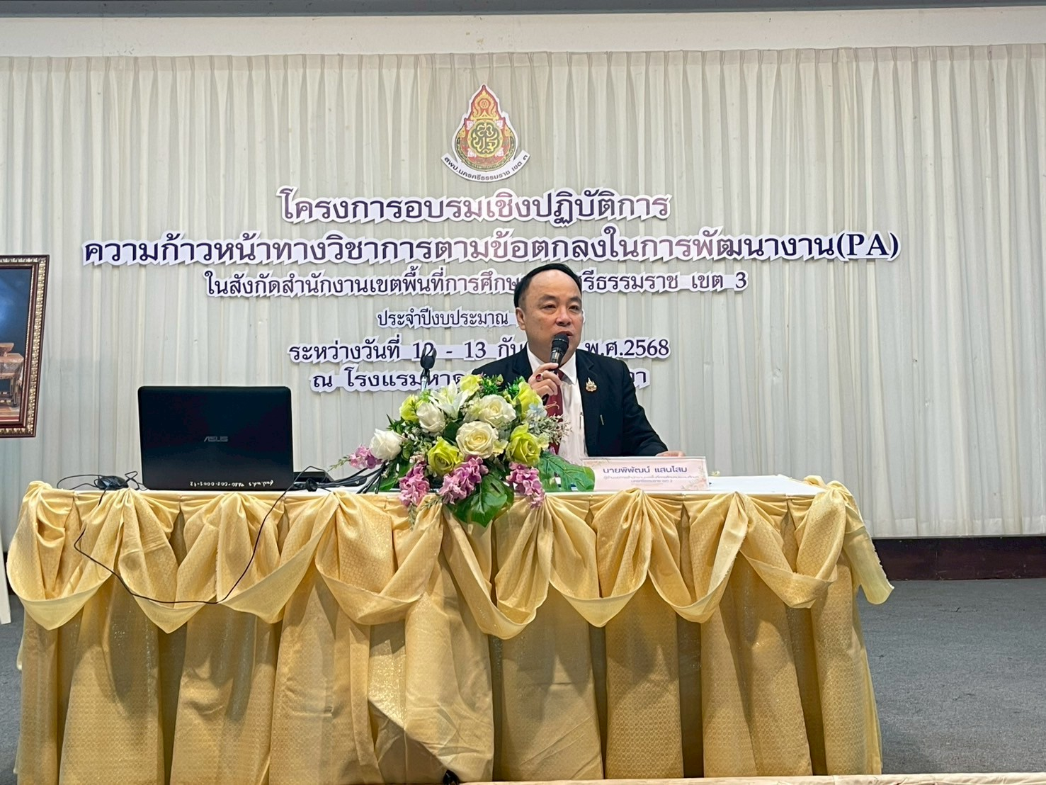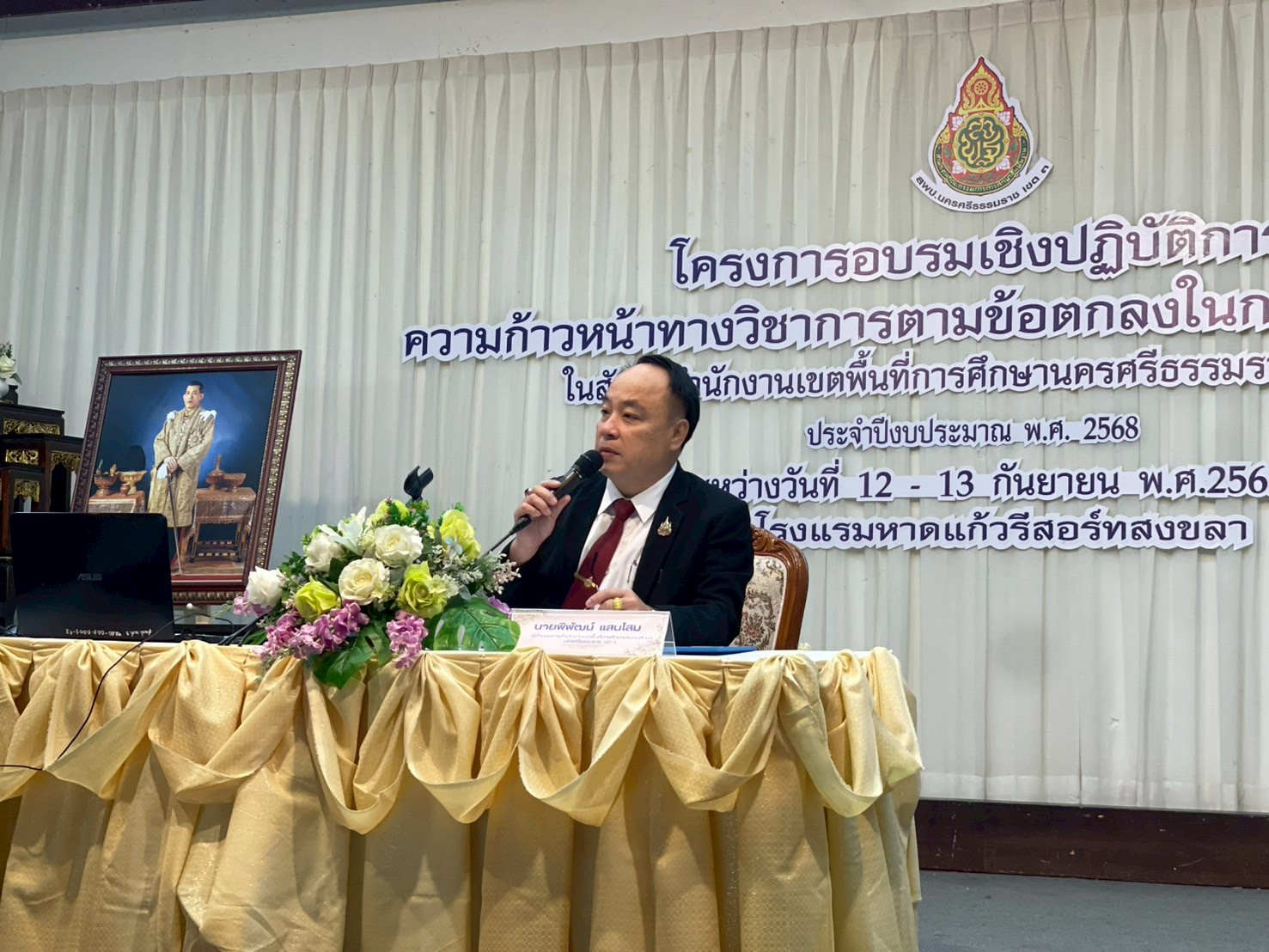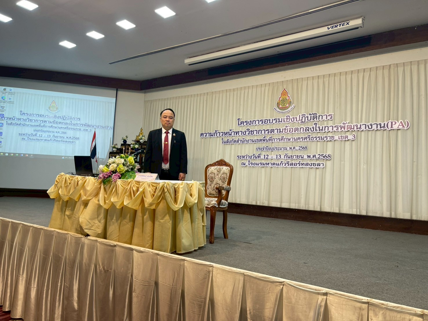 วันศุกร์ที่ 12 กันยายน 2568 นายพิพัฒน์ แสนโสม ผู้อำนวยการสำนักงานเขตพื้นที่การศึกษาประถมศึกษานครศรีธรรมราช เขต 3 เป็นประธานเปิดโครงการอบรมเชิงปฏิบัติการความก้าวหน้าทางวิชาการตามข้อตกลงในการพัฒนางาน (PA)ในสังกัดสำนักงานเขตพื้นที่การศึกษาประถมศึกษานครศรีธรรมราช เขต 3 ประจำปีงบประมาณ พ.ศ.2568 โดยจะดำเนินโครงการระหว่างวันที่ 12 – 13 กันยายน 2568 ณ โรงแรมหาดแก้วรีสอร์ท อำเภอสิงหนคร จังหวัดสงขลา