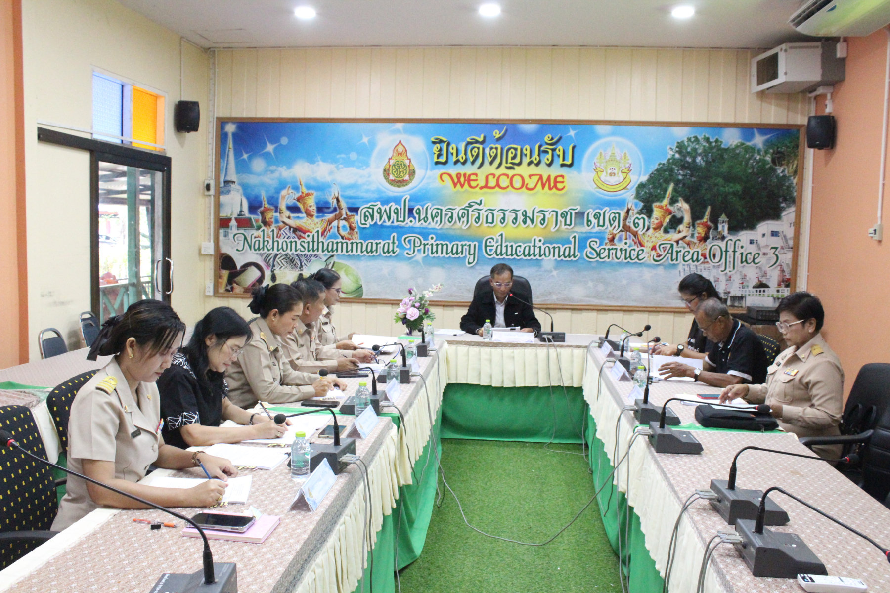 วันจันทร์ที่ 10 พฤศจิกายน 2568 นายพิพัฒน์ แสนโสม ผู้อำนวยการสำนักงานเขตพื้นที่การศึกษาประถมศึกษานครศรีธรรมราช เขต 3 มอบหมายให้ นายโสภาส โอพริก รองผู้อำนวยการสำนักงานเขตพื้นที่การศึกษาประถมศึกษานครศรีธรรมราช เขต 3 เป็นประธานประชุมคณะกรรมการรับนักเรียนระดับเขตพื้นที่การศึกษาของสำนักงานเขตพื้นที่การศึกษาประถมศึกษานครศรีธรรมราชเขต 3 สังกัดสำนักงานคณะกรรมการการศึกษาขั้นพื้นฐาน ปีการศึกษา 2569 (ครั้งที่ 1/2568) ณ ห้องประชุมปะการัง สำนักงานเขตพื้นที่การศึกษาประถมศึกษานครศรีธรรมราช เขต 3