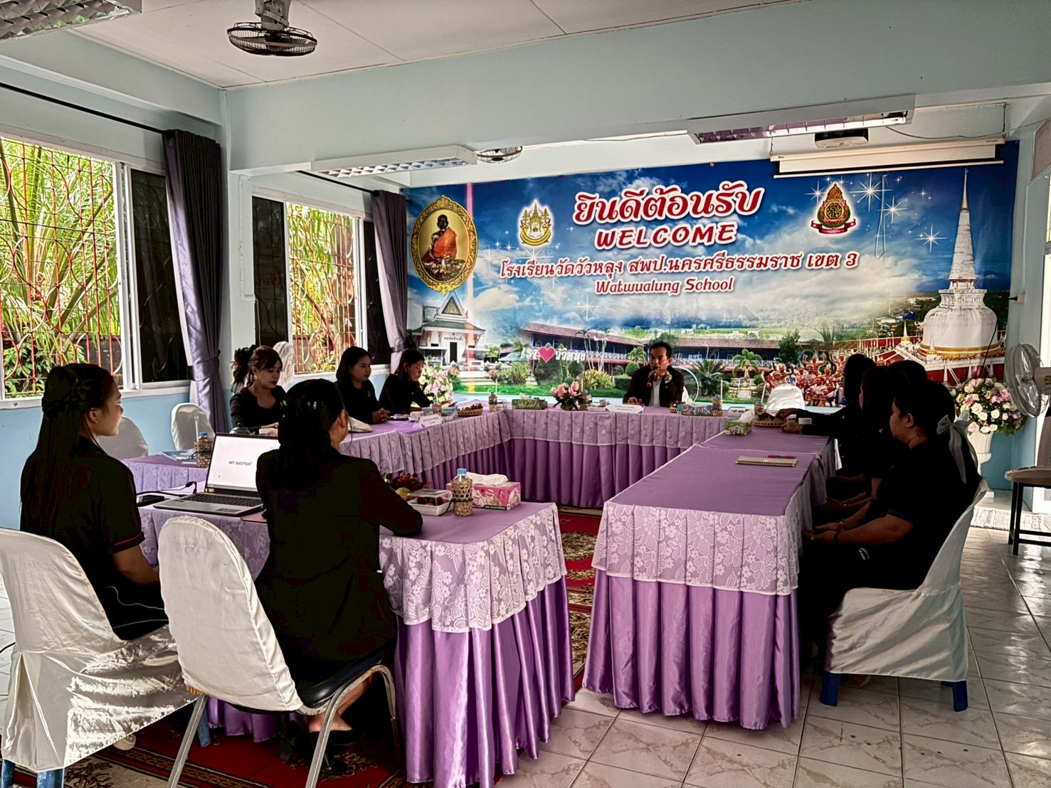 วันพุธที่ 19 พฤศจิกายน 2568 นายพิพัฒน์ แสนโสม ผู้อำนวยการสำนักงานเขตพื้นที่การศึกษาประถมศึกษานครศรีธรรมราช เขต 3 มอบหมายให้ นายโสภาส โอพริก รองผู้อำนวยการสำนักงานเขตพื้นที่การศึกษาประถมศึกษานครศรีธรรมราช เขต 3 พร้อมด้วยคณะกรรมการ ก.ต.ป.น. และคณะอนุกรรมการ ก.ต.ป.น. ลงพื้นที่ติดตามการเตรียมความพร้อมตรวจเยี่ยมสถานศึกษา ภาคเรียนที่ 2 ปีการศึกษา 2568 เพื่อติดตามความพร้อมในการจัดการเรียนการสอนตามระดับชั้นเรียน โครงการอาหารกลางวัน สภาพแวดล้อมด้านอาคาร สถานที่ บริเวณโรงเรียน ในการเปิดภาคเรียนให้เป็นไปอย่างราบรื่น และพบปะพูดคุย ให้กำลังใจแก่ผู้บริหารสถานศึกษา คณะครู ในการปฏิบัติหน้าที่ ทั้งนี้ได้มอบแนวทางการพัฒนาคุณภาพการศึกษาให้สอดคล้องตามจุดเน้นของสำนักงานเขตพื้นที่การศึกษาประถมศึกษานครศรีธรรมราช เขต 3 ( 1 บ 4 อ )