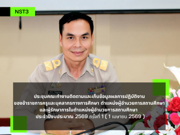 เป็นประธานประชุมคณะทำงานติดตามและเก็บข้อมูลผลการปฏิบัติงานของข้าราชการครูและบุคลากรทางการศึกษา ตำแหน่งผู้อำนวยการสถานศึกษาและผู้รักษาการในตำแหน่งผู้อำนวยการสถานศึกษา ประจำปีงบประมาณ 2569 ครั้งที่ 1 (1 เมษายน 2569)