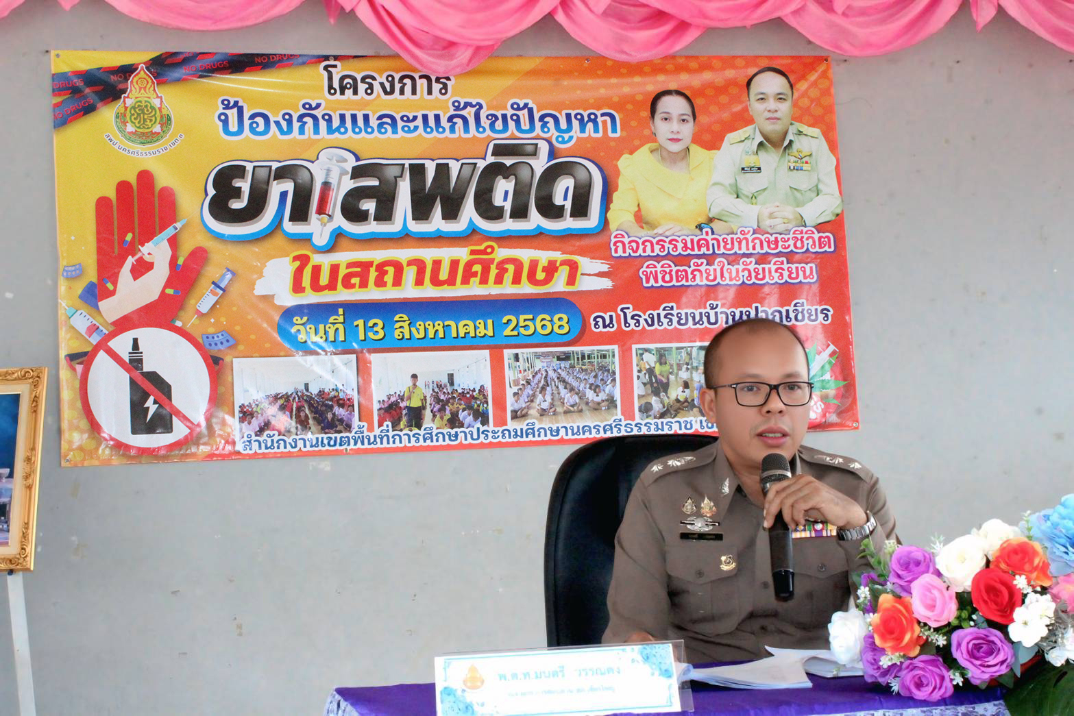 วันพุธที่ 13 สิงหาคม 2568 นายพิพัฒน์ แสนโสม ผู้อำนวยการสำนักงานเขตพื้นที่การศึกษาประถมศึกษานครศรีธรรมราช เขต 3 มอบหมายให้ นายกัปตัน พิภพลาภอนันต์ รองผู้อำนวยการสำนักงานเขตพื้นที่การศึกษาประถมศึกษานครศรีธรรมราช เขต 3 เป็นประธานในพิธีเปิดโครงการอบรมป้องกันและแก้ไขปัญหายาเสพติดในสถานศึกษากิจกรรมค่ายทักษะชีวิต พิชิตภัยในวัยเรียน ณ โรงเรียนบ้านปากเชียร อำเภอเชียรใหญ่ จังหวัดนครศรีธรรมราช โดยวัตถุประสงค์ในการจัดกิจกรรมครั้งนี้เพื่อให้ผู้เข้ารับการอบรมมีความรู้เกี่ยวกับการเสริมสร้างภูมิคุ้มกันป้องกันและแก้ไขปัญหายาเสพติดและสารเสพติด ระบบการดูแลช่วยเหลือนักเรียน ตลอดจนการดำเนินงานด้านความปลอดภัย