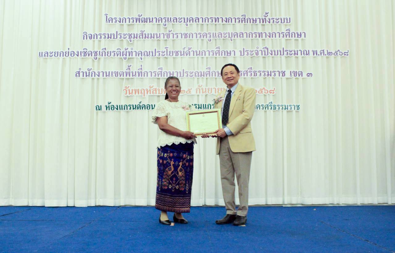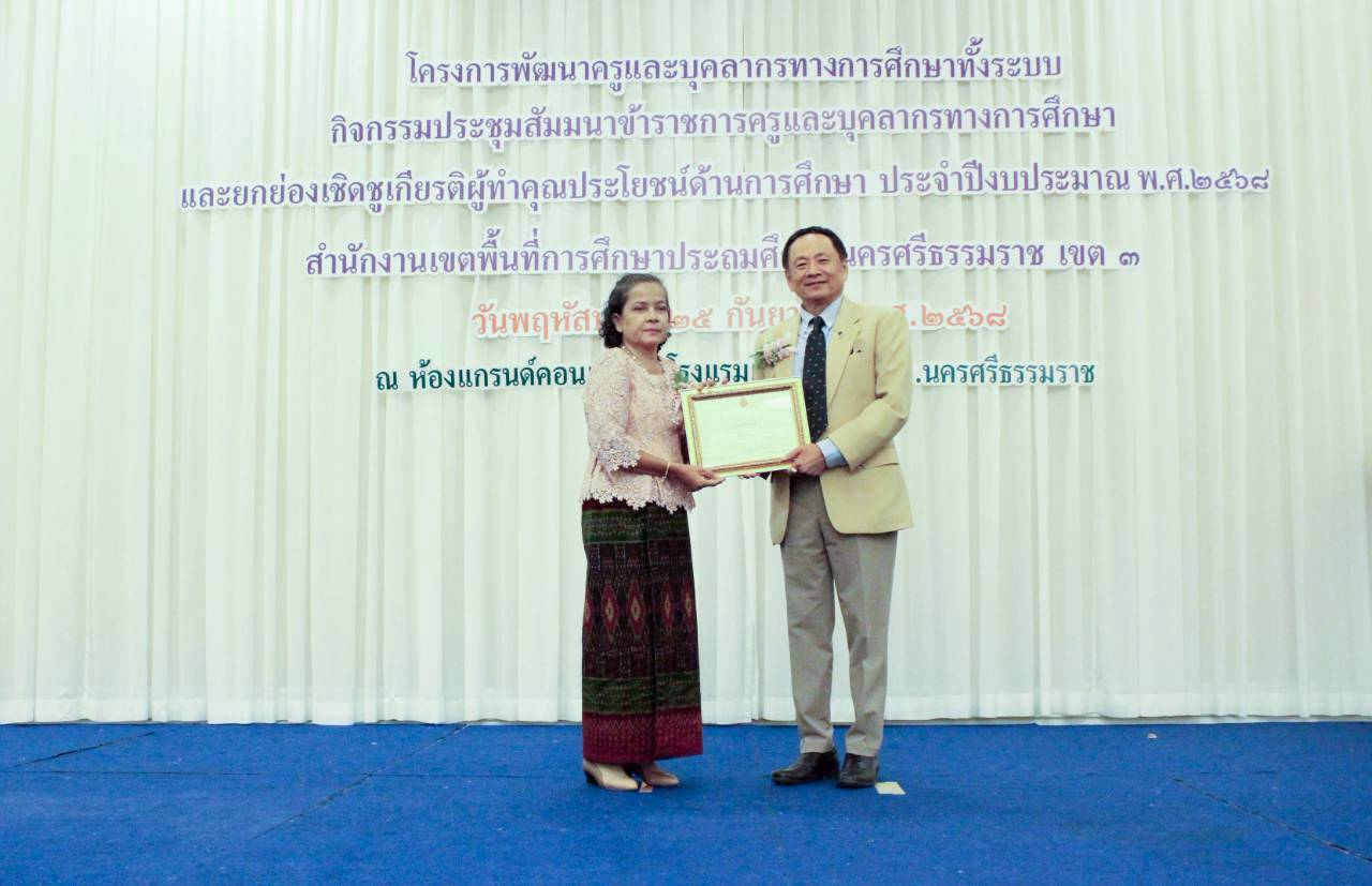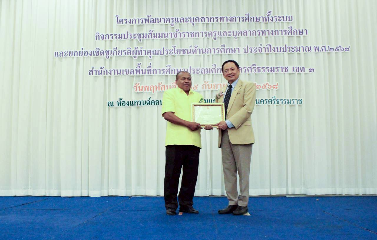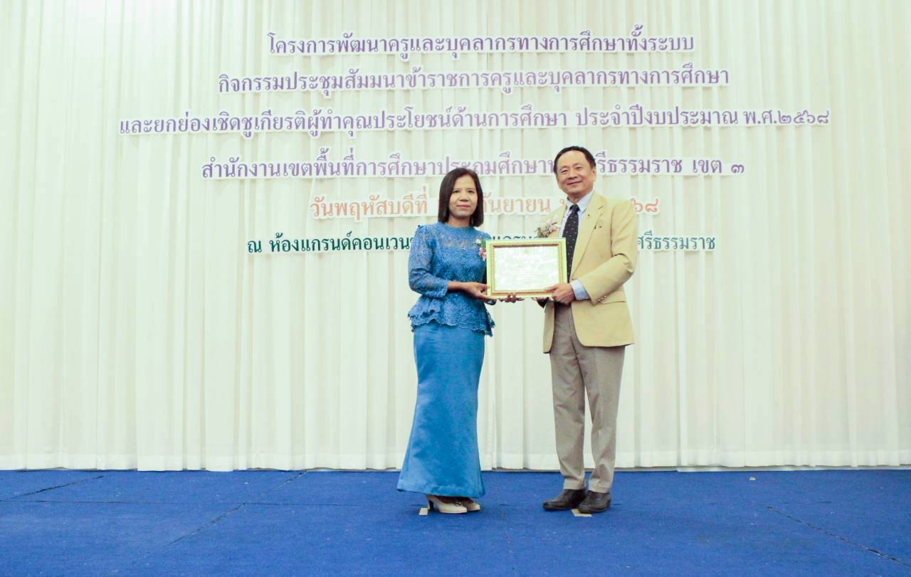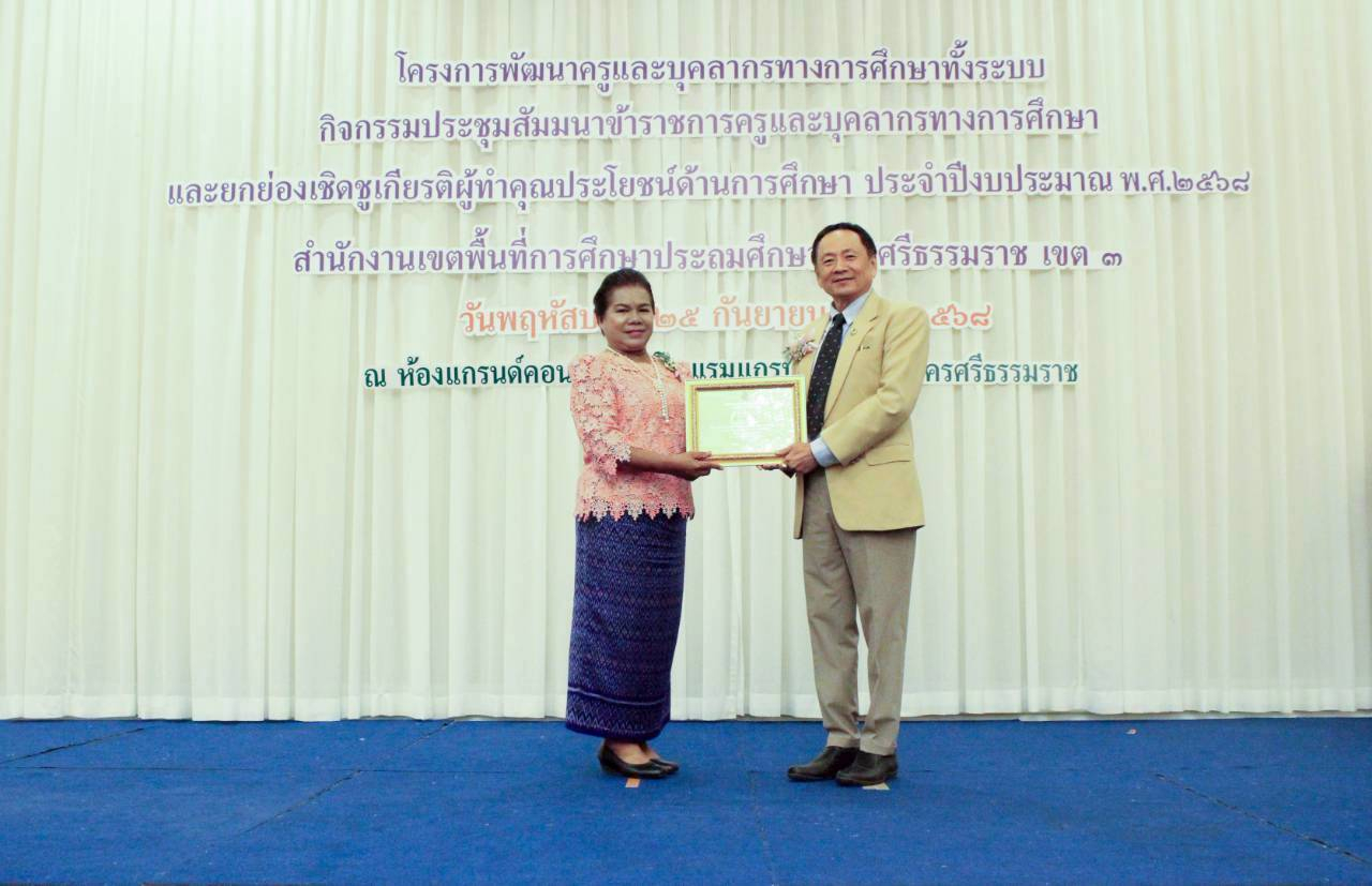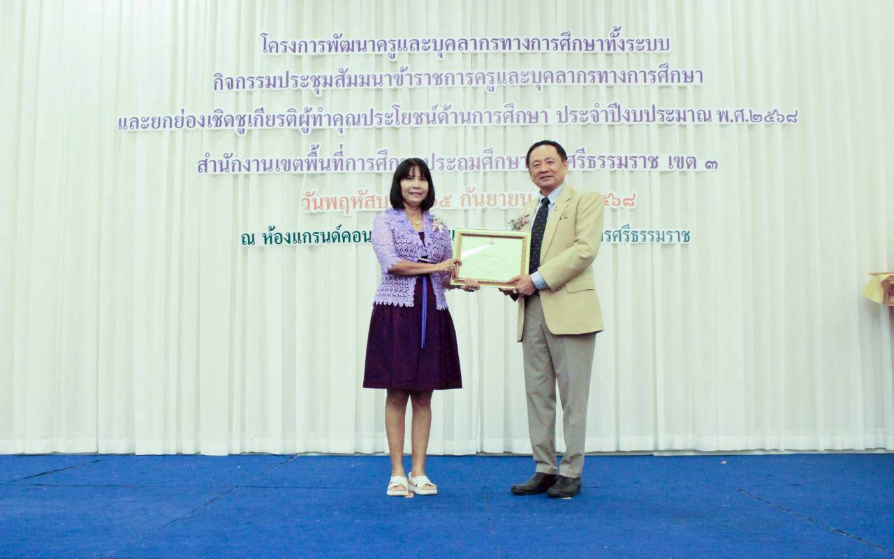 วันพฤหัสบดีที่ 25 กันยายน 2568 นายพิพัฒน์ แสนโสม ผู้อำนวยการสำนักงานเขตพื้นที่การศึกษาประถมศึกษานครศรีธรรมราช เขต 3 มอบหมายให้ นายโสภาส โอพริก รองผู้อำนวยการสำนักงานเขตพื้นที่การศึกษาประถมศึกษานครศรีธรรมราช เขต 3 ดำเนินการจัดโครงการพัฒนาครูและบุคลากรทางการศึกษาทั้งระบบกิจกรรมประชุมสัมนาข้าราชการครูและบุคลากรทางการศึกษาและยกย่องเชิดชูเกียรติผู้ทรงคุณวุฒิผู้ทำคุณประโยชน์ด้านการศึกษา ประจำปีงบประมาณ พ.ศ. 2568